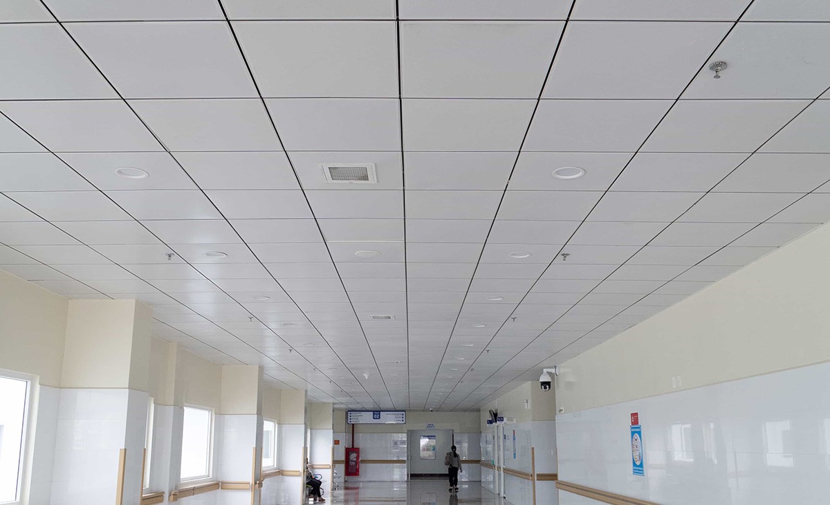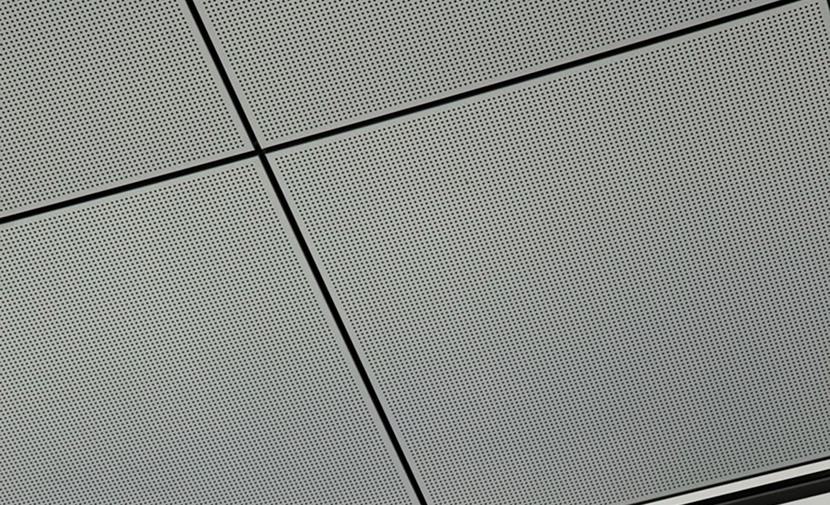 Trần nhôm Austrong Lay-in T-Black bề mặt được đục lỗ và được trang bị một lớp vải không dệt để kiểm soát âm thanh và giảm tiếng ồn.